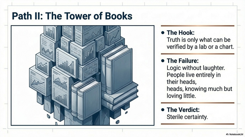 Theo appreciated their clarity — they had countless charts, infographics, thesis research, and meta-analyses stacked as high as he could see. But the higher he climbed, the colder it got. People lived in their heads. They knew much but loved little. Arguments never ended. It was logic without laughter.