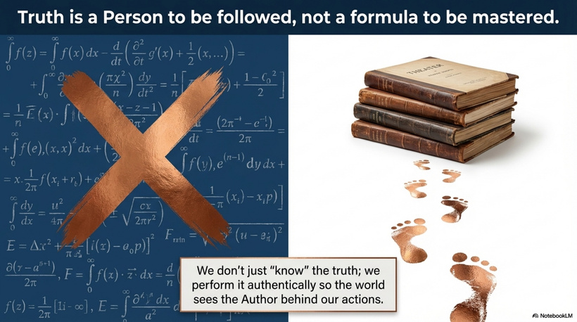 In this picture, Scripture is not just a textbook of information — it is a Script, a living Word that invites us to embody and perform the truth with our whole lives.